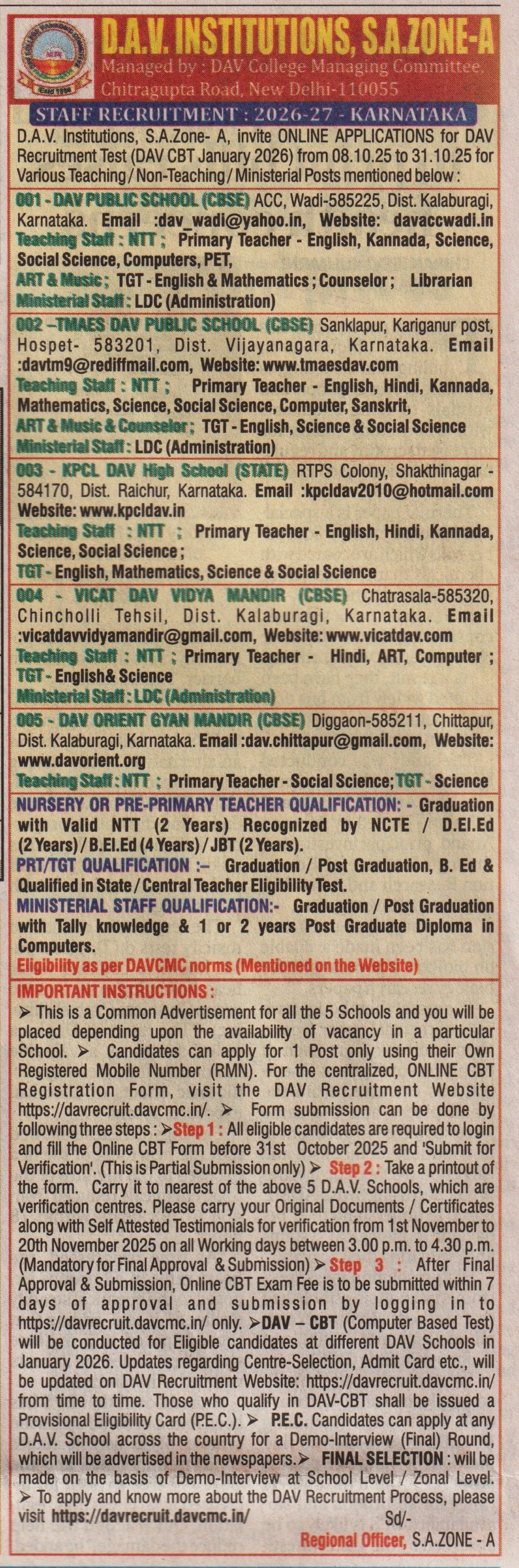 TMAES DAV PUBLIC SCHOOL,HOSPET established in 2007, a premier institution of DAV located in mining town Hospet. Established by visionary Late Shree Chandra Mouleshwara Swamiji Tegginamath and founder Regional ....